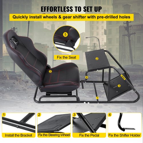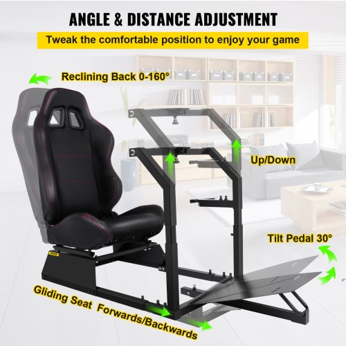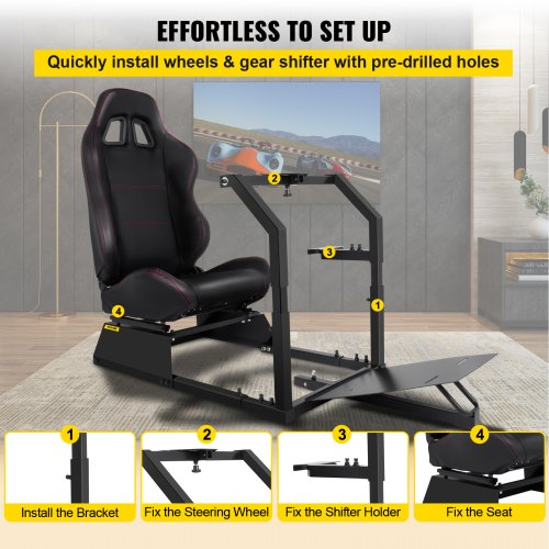 Soporte para volante de carreras VEVOR, pedal y asiento ajustables para simulador de carreras, soporte de acero al carbono para volante, silla de juego compatible con volantes Logitech, Thrustmaster, PS3/4 y Xbox 360.