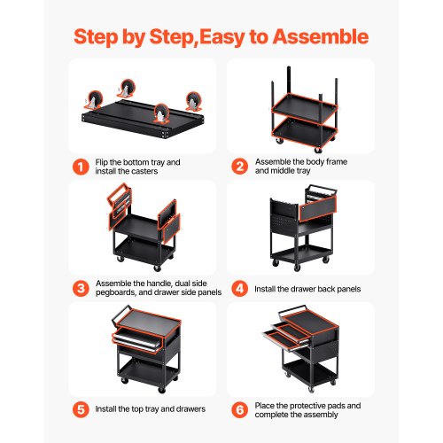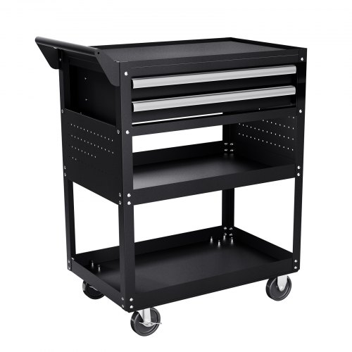 VEVOR - Carro de herramientas de 5 niveles con ruedas, capacidad de carga de 181 kg, con ruedas, 2 cajones y tablero perforado, organizador de herramientas para mecánicos con sistema de bloqueo para garaje, almacén y taller, color negro