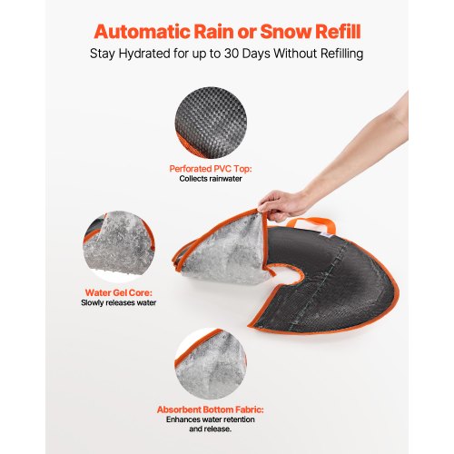 Anillos de riego para árboles VEVOR, 4 bolsas de riego de 20 galones, liberación lenta de 6 a 9 horas, bolsas de agua rellenables para plantar, ahorro de agua, sistema de riego de alta resistencia para el riego por goteo de raíces de arbustos y árboles.