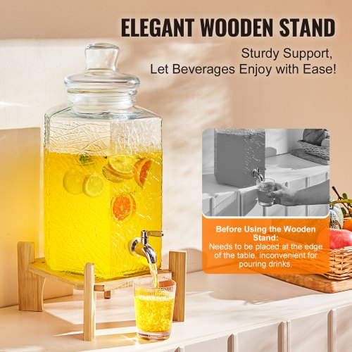 Dispensador de bebidas VEVOR de 2.5 galones para fiestas, dispensador de jugo de vidrio con soporte y grifo de acero inoxidable, ideal para té helado, limonada, jugo y agua, ideal para restaurantes, hoteles y fiestas.