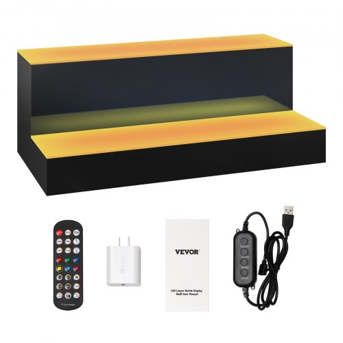 VEVOR Exhibidor de botellas de licor con luz LED, 2 niveles de 16 pulgadas, compatible con USB, estante de barra iluminado para el hogar con control remoto RF y control de aplicación, 7 colores estáticos, sincronización de 1 a 4 H, estante de iluminación acrílica para 8 botellas