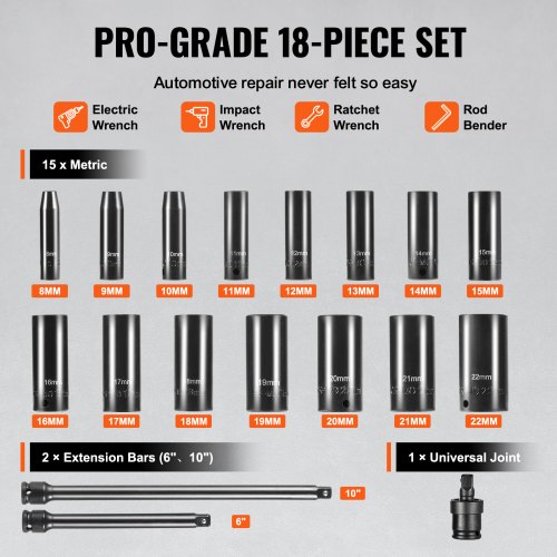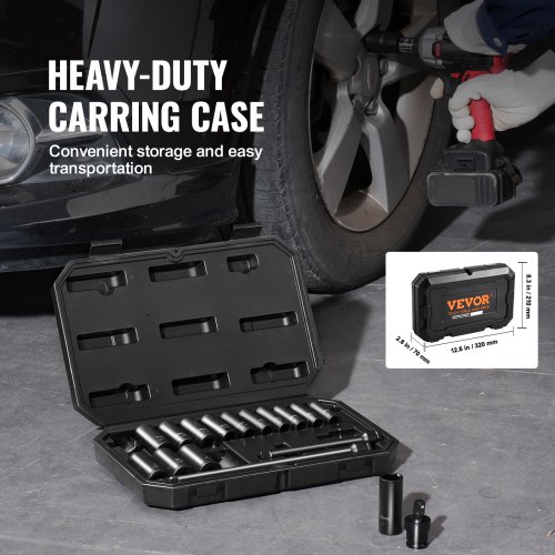 Juego de dados de impacto VEVOR de 1/2", 9 piezas, métricos de 29-38 mm, de 6 puntas, de acero de aleación Cr-Mo para reparación de automóviles, marcas de tamaño fáciles de leer, construcción robusta, incluye estuche.