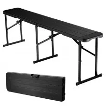 Banco plegable de plástico VEVOR, portátil de 1,8 m para interior/exterior, picnic, fiesta, patio, camping, comedor, asiento plegable de HDPE liso para jardín, fútbol, actividades multiusos, 1 paquete, negro