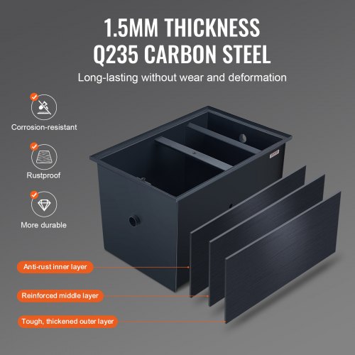 Trampa de grasa comercial VEVOR, interceptor de grasa de 18 kg, con entrada lateral, trampa de grasa de acero al carbono para debajo del fregadero, separador de aceite y agua de 5,7 l/min para aguas residuales, ideal para restaurantes, cantinas, cocinas domésticas.