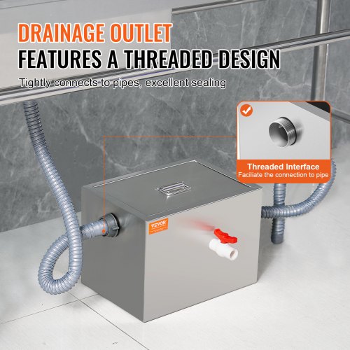 Trampa de grasa comercial VEVOR, interceptor de grasa de 18 kg, con entrada superior, trampa de grasa de acero inoxidable para debajo del fregadero, separador de aceite y agua de 38 l/min para aguas residuales, ideal para restaurantes, cantinas, cocinas domésticas.