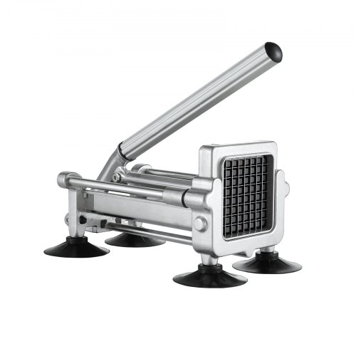 Cortador de papas fritas comercial VEVOR con 4 cuchillas de repuesto, cuchillas de 1/4″ y 3/8″, cortador de dados fácil, rebanador de 6 gajos y descorazonador de manzanas de 6 gajos, cortador de papas con limón para papas fritas con bandeja y asa.