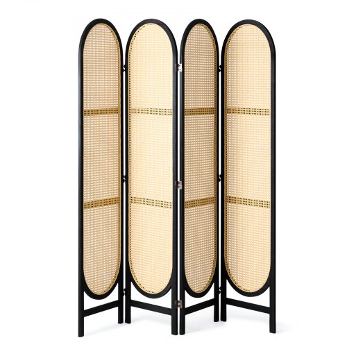 Biombo VEVOR de 4 paneles, biombo plegable de ratán tejido a mano con bisagras, separador portátil de ambientes, separador de pared independiente de madera para sala de estar y dormitorio, color marrón