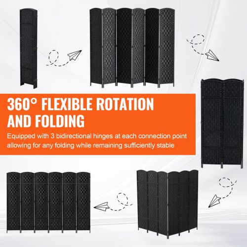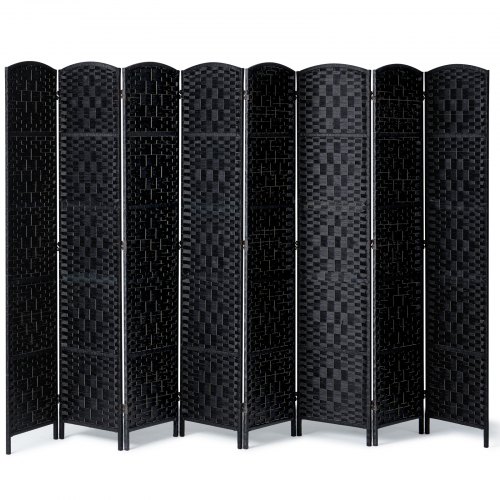 Biombo VEVOR de 8 paneles, plegable, tejido a mano, con bisagras, portátil e independiente, para separar ambientes, color negro