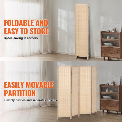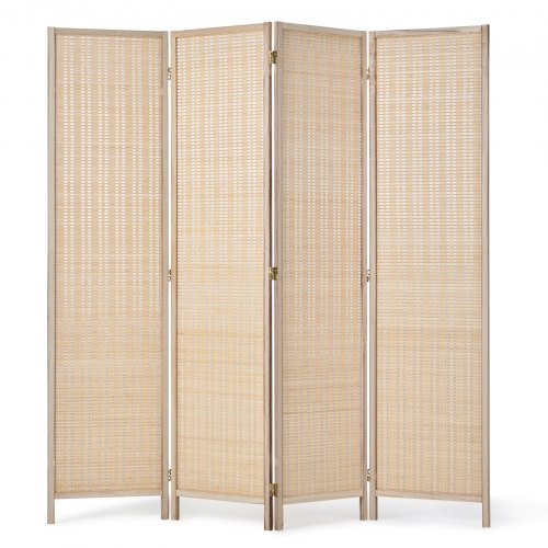 Biombo de 4 paneles VEVOR, biombos plegables de bambú tejido a mano con bisagras, separadores portátiles y separadores de pared independientes para separar ambientes, salas de estar y dormitorios, color natural.