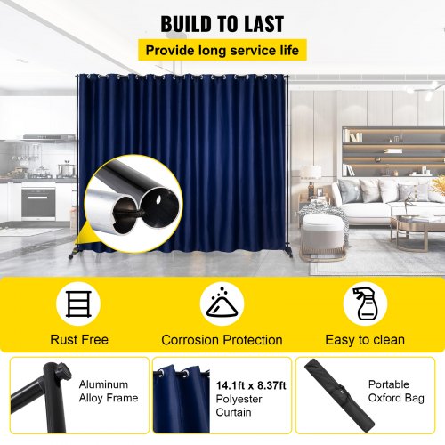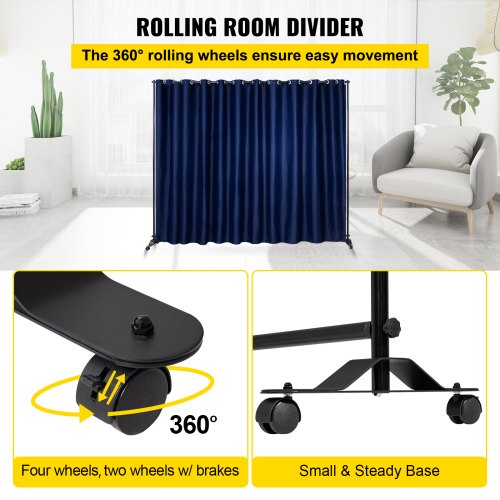 Kit divisor de ambientes VEVOR, 2,4 m x 3 m, con 4 ruedas, marco de aleación de aluminio, cortina opaca y bolsa Oxford portátil incluida, divisor de ambientes expandible para oficina (azul marino)