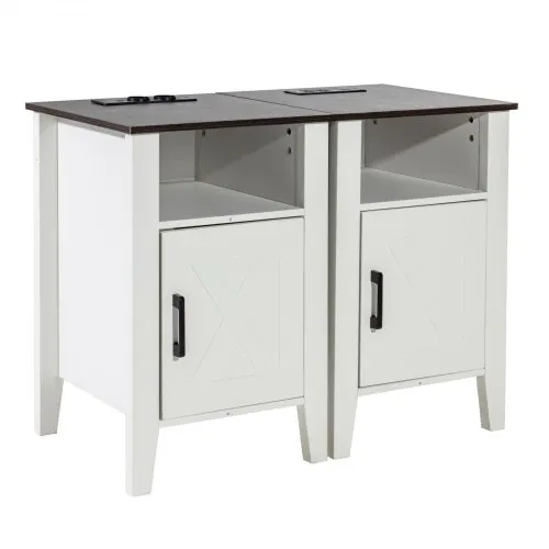 VEVOR - Juego de 2 mesas auxiliares estilo granja, mesita de noche con estación de carga, mesa auxiliar de 3 niveles con armario de almacenamiento y 2 cajones, mesa auxiliar con puertos USB y enchufes, ideal para sala de estar y dormitorio, color gris