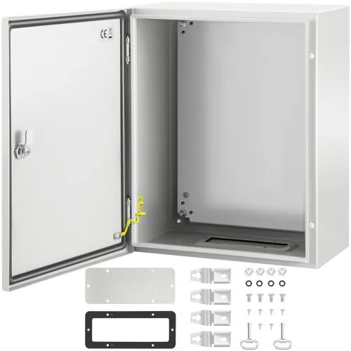 Caja eléctrica VEVOR, 20\'\' x 16\'\' x 8\'\', caja para exteriores NEMA 4 con certificación, IP65, resistente al agua y al polvo, caja de conexiones con bisagras de acero al carbono laminado en frío para uso en interiores y exteriores, con lluvia H