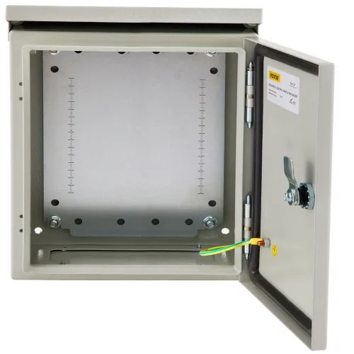 Caja eléctrica VEVOR, 12\'\' x 8\'\' x 8\'\', caja para exteriores NEMA 4 con certificación, IP65, resistente al agua y al polvo, caja de conexiones con bisagras de acero al carbono laminado en frío para uso en interiores y exteriores, con protección contra lluvia