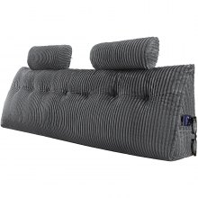 VEVOR - Almohada para cabecero de cama, tamaño king, con 2 bolsillos laterales y 2 reposacabezas, con tela de franela lavable, ideal para leer, jugar, descansar y trabajar en la cama, color gris.
