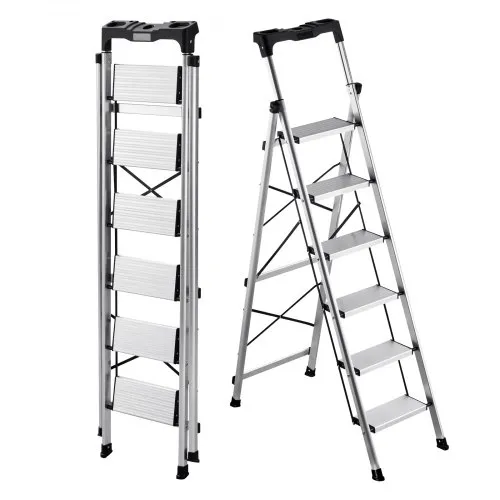 VEVOR Escalera de Aluminio Plegable 6 Peldaños, Escalera de Tijera con Pedal Antideslizante y Empuñadura Cómoda, Capacidad de 150 kg, Taburete Multifuncional para Cocina, Almacén, Hogar, Oficina