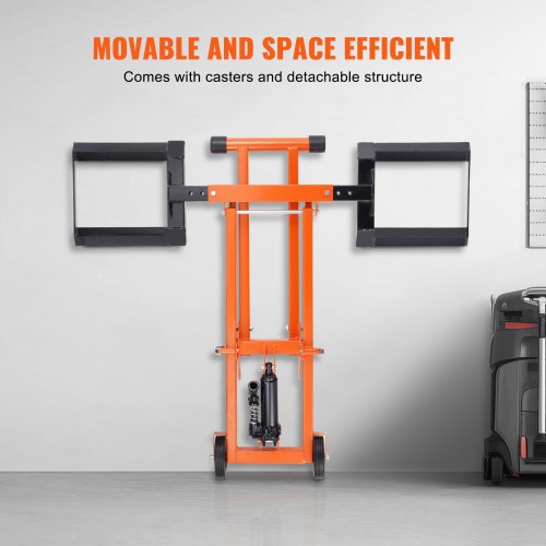 Elevador para cortacésped VEVOR con gato hidráulico, capacidad de peso de 227 kg, elevador de acero al carbono macizo, elevador móvil ajustable para tractores y cortacéspedes de giro cero, color naranja