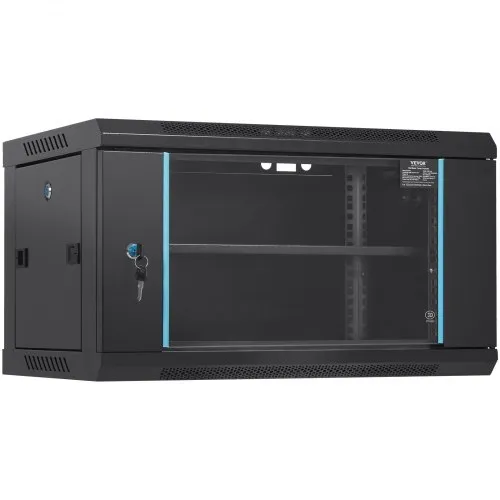 Gabinete para servidores de red VEVOR 6U de montaje en pared, 15.5'' de profundidad, con capacidad de carga máxima de 90 kg (montaje en el suelo), con paneles laterales de puerta de vidrio con cerradura, para equipos informáticos y dispositivos audiovisuales.