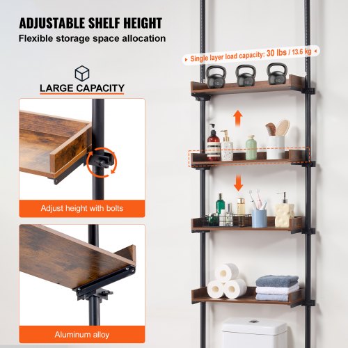 VEVOR - Organizador de baño ajustable de 4 niveles para colocar sobre el inodoro. Estante de acero bajo en carbono de 135 a 333 cm de alto. Fácil de montar y ahorra espacio para la colada. Ideal para habitaciones pequeñas. Se adapta a la mayoría de los inodoros.