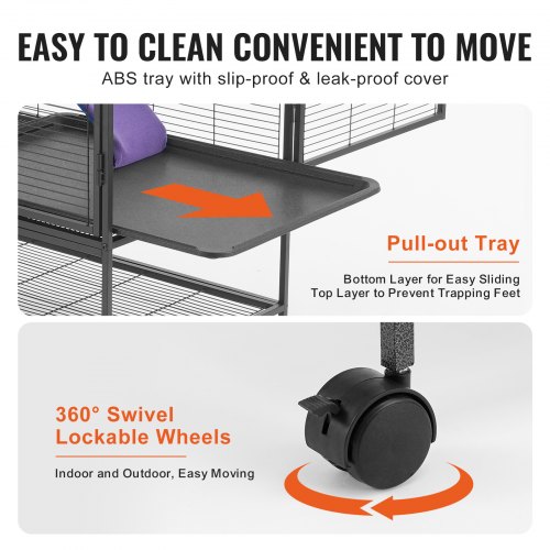 VEVOR Jaula para Gatos Jaula de 3 Niveles con Ruedas Bloqueables Recinto para Gatos Giratorio de 360° 760x865x1630 mm con Caja de Descanso para 1-2 Gatos Animales Pequeños Conejos, Interior y Exterior