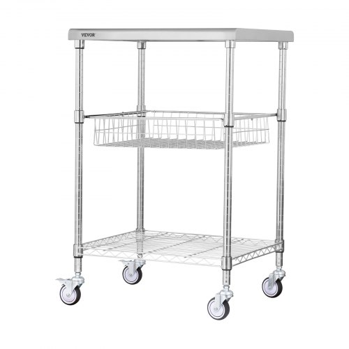 Carrito de compras plegable VEVOR, carrito jumbo con cestas dobles, ruedas giratorias de 360°, carrito utilitario resistente, carrito utilitario de gran capacidad de 50 kg para lavandería, compras, comestibles y equipaje.