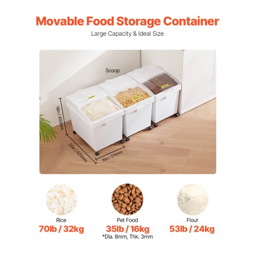 VEVOR Contenedor de almacenamiento de ingredientes, contenedor de ingredientes con estante de capacidad de 11.4 galones, contenedores de harina de 280 tazas con ruedas Contenedor de ingredientes de almacenamiento en estante Prosave comercial con tapa y cuchara para arroz para cocina, color blanco