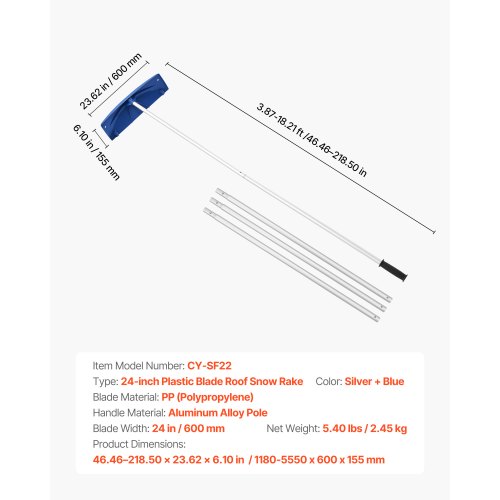 Rastrillo de nieve para techo VEVOR, hoja de plástico PP de 61 cm, ajustable de 1,1 a 5,5 m con ruedas, mango antideslizante, herramienta para quitar nieve, ligero y apto para techos de casas, ideal para retirar hojas y escombros.
