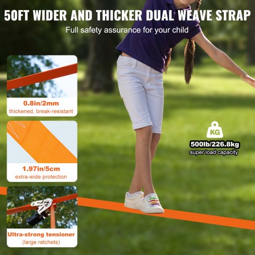 Circuito de obstáculos VEVOR Ninja Warrior para niños, 2 slacklines de 15 m resistentes a la intemperie, línea de mono con capacidad de carga de 227 kg, equipo de juego para exteriores, juego de entrenamiento para jardín con 10 obstáculos
