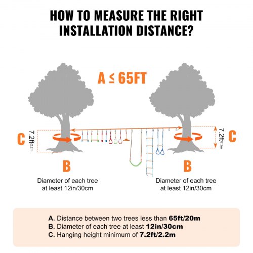 Circuito de obstáculos VEVOR Ninja Warrior para niños, 2 slacklines de 65 pies resistentes a la intemperie, línea de mono con capacidad de peso de 500 libras, equipo de juego para exteriores, juego de entrenamiento para patio trasero con 12 obstáculos