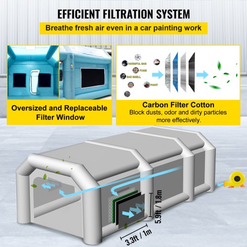 Cabina de pintura inflable VEVOR, 7 x 4 x 2,7 m, con potentes sopladores de 750 W + 480 W y sistema de filtro de aire, ideal para motocicletas grandes y autos, camiones pequeños y SUV medianos.