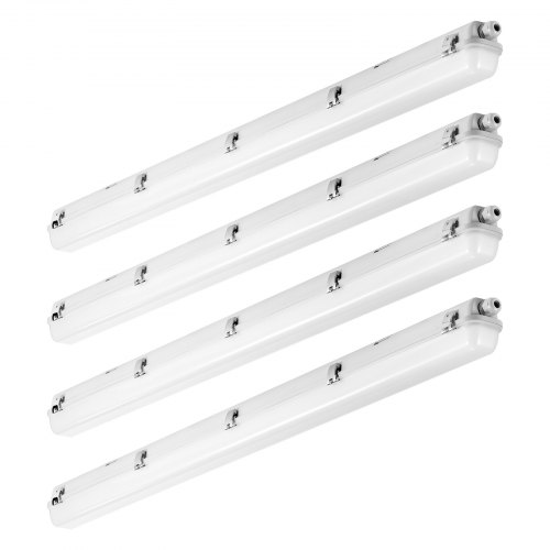 VEVOR - Luz LED hermética de 1,2 m (60 W/50 W/40 W seleccionable), 5000 K, 5400/6400/7400 lm, ajustable, IP65, resistente al agua, para estacionamientos, almacenes, cámaras frigoríficas, lavaderos de autos (paquete de 4)