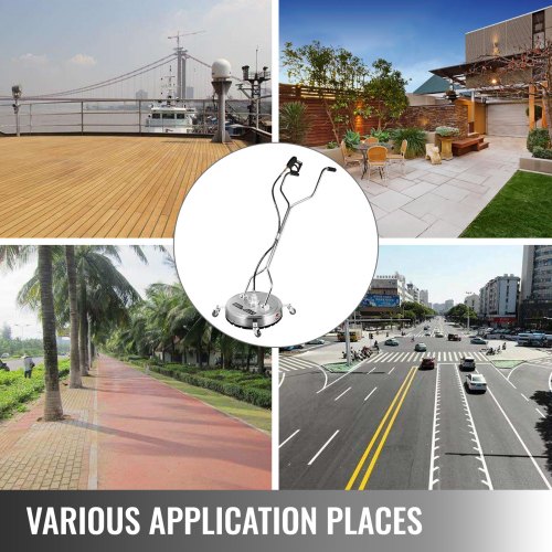 Limpiador de superficies con hidrolavadora VEVOR, 23', presión máxima de 4000 PSI con 3 boquillas para limpiar entradas de vehículos y aceras, marco de acero inoxidable con mango giratorio, ruedas, compatible con conexión rápida de 3/8'