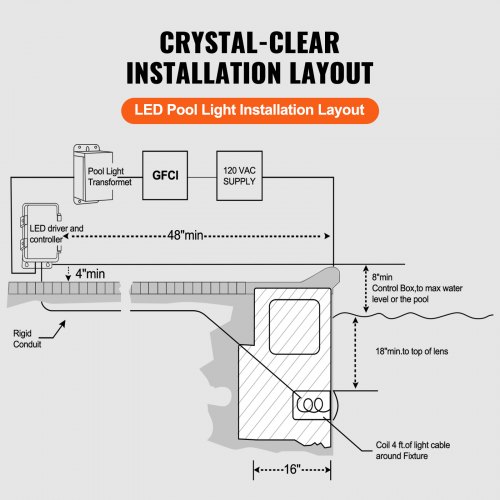 Iluminación LED para piscina VEVOR de 12 V, 25 cm de diámetro, 40 W, RGBW multicolor, sumergible para piscinas y spas. Incluye cable de 15,2 m y control remoto. Apta para nichos húmedos de 25 cm. IP68.