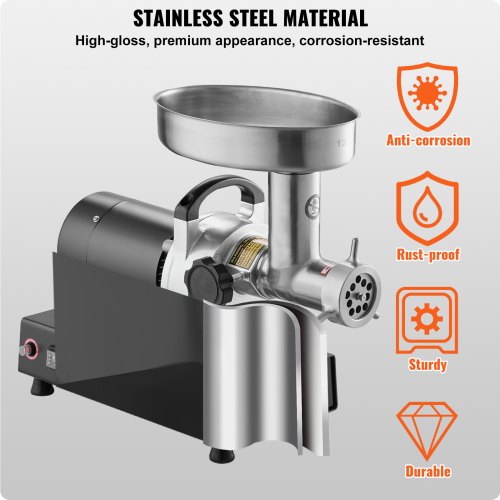 Picadora de carne VEVOR, capacidad de 4.2 lb/min, eléctrica, con cuchilla, placa de molienda, máquina para hacer salchichas, kit Kubbe, prensa para hamburguesas y accesorio picador, de acero inoxidable para cocina doméstica.