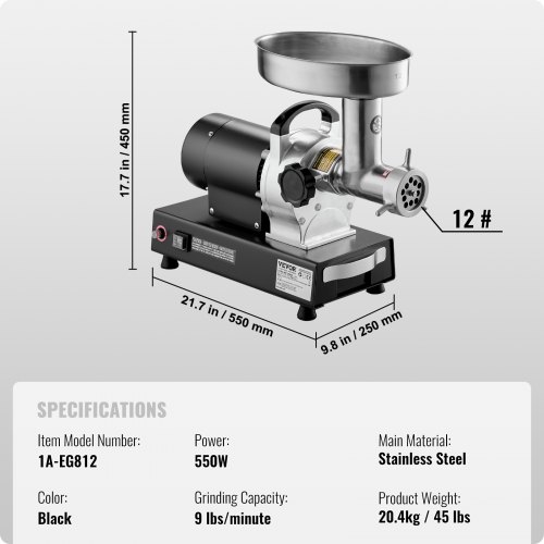 Picadora de carne VEVOR, picadora de carne eléctrica de 9 lb/min con cuchilla y placa de molienda, máquina para hacer salchichas, picadora de carne comercial de acero inoxidable para cocina, restaurante, carnicería