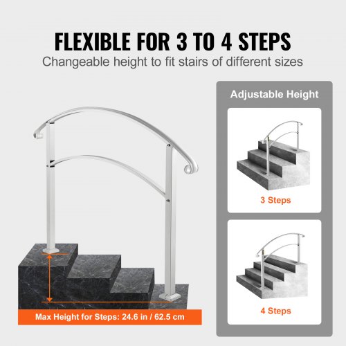 VEVOR - Barandilla de escalera para exterior, apta para 1 o 2 escalones, de aleación de metal, flexible, de transición, para porche, con kit de instalación, para escaleras de hormigón o madera, color plateado