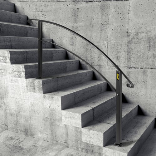 VEVOR - Barandilla de escalera para exterior, de aleación de metal, flexible, para 1 o 2 escalones, con kit de instalación, para escaleras de hormigón o madera, color negro