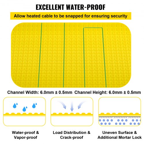 VEVOR Membrana de Polietileno para Desacoplamiento 12,5 x 1 m Rollo de Membrana de Desacoplamiento Grosor 3 mm Membrana para Desacoplar e Impermeabilizar Área de Cobertura 12,5 m² para Baño Cocina