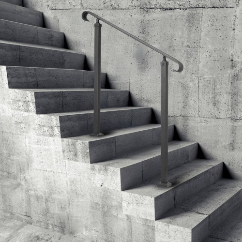 VEVOR - Barandilla de acero negro de un solo poste (1-2 pies), capacidad de 200 kg, con barniz para hornear, para escaleras de exterior, con pernos de expansión y broca.