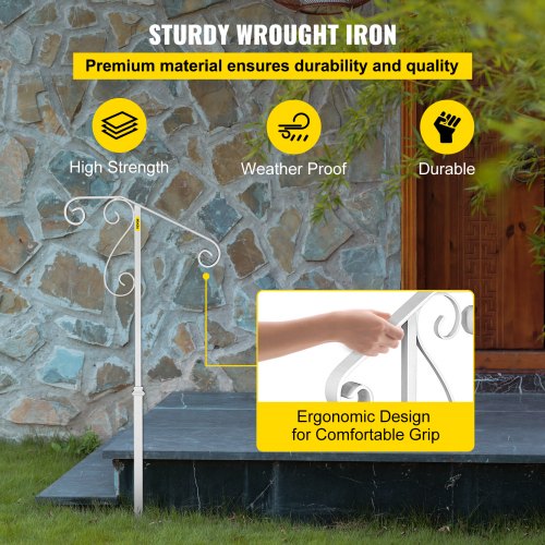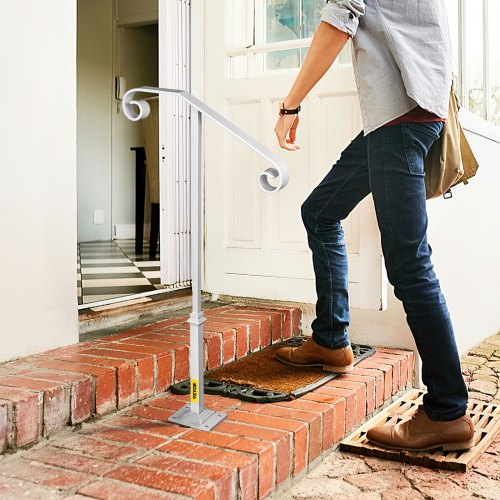 Pasamanos VEVOR para escaleras exteriores, aptos para 1 o 3 escalones, de hierro forjado blanco, flexibles para porches delanteros, de transición para escalones de hormigón o madera.