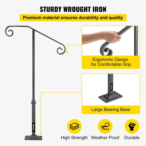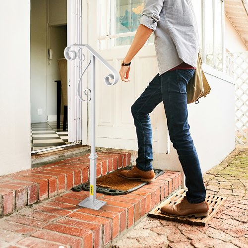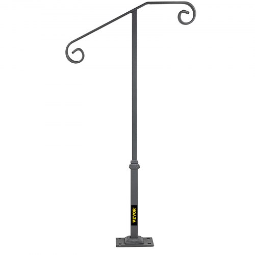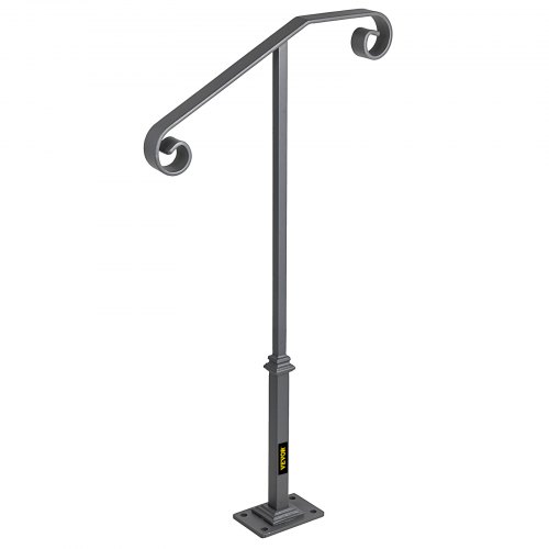 Pasamanos VEVOR para escaleras exteriores, aptos para 1 o 2 escalones, pasamanos de hierro forjado de un solo poste, barandillas de porche de transición grises para escalones de hormigón o escaleras de madera con base.