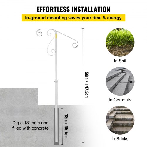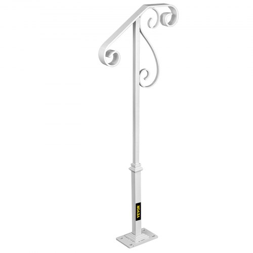 Pasamanos VEVOR para escaleras exteriores, apto para 1 o 2 escalones, pasamanos de hierro forjado de un solo poste con diseño floral, barandillas blancas para porche, para escalones de hormigón o escaleras de madera sin base.