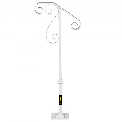 Pasamanos VEVOR para escaleras exteriores, apto para 1 o 2 escalones, pasamanos de hierro forjado de un solo poste con diseño floral, barandillas blancas para porche para escalones de hormigón o escaleras de madera con base.