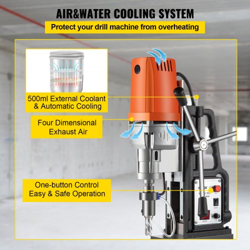 Taladro magnético VEVOR de 980 W, taladro de columna para metal de alta potencia (680 rpm), taladro de columna multifunción de 35 mm, máquina de perforación con núcleo para taladrar y roscar.