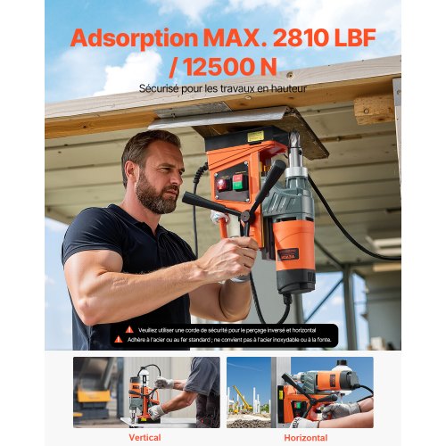 VEVOR Taladro magnético, 1550 W 2 pulgadas de diámetro de perforación, 2922 lbf/13000 N 500 RPM Taladro eléctrico portátil con velocidad variable, máquina perforadora para cualquier superficie de mejora del hogar industria ferroviaria
