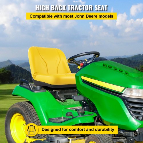 Asiento universal para tractor VEVOR, respaldo alto industrial, asiento de repuesto de PVC para cortacésped y jardín, con orificio de drenaje y marco de acero, asiento compacto para carretilla elevadora, compatible con excavadoras, cortacéspedes y montacargas, amarillo