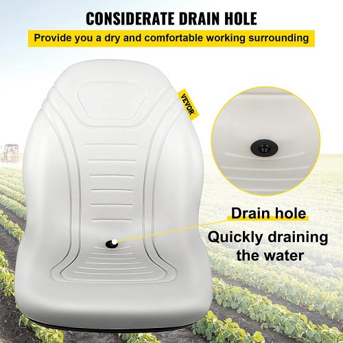 Asiento universal de repuesto VEVOR para tractor, asiento compacto con respaldo alto para cortacésped, asiento de vinilo gris para montacargas, orificio de drenaje central para minicargadora con patrones de pernos de montaje de 8" x 11.5" y 11.25" x 11.5".