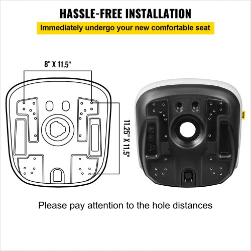 Asiento universal de repuesto VEVOR para tractor cortacésped, asiento compacto con respaldo alto para cortacésped, asiento de vinilo negro para montacargas, orificio de drenaje central para minicargadora con patrones de pernos de montaje de 8" x 11.5" y 11.25" x 11.5".