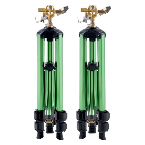 Aspersor de impacto VEVOR con base de trípode (2 unidades), resistente, con cabezal de latón y conector NH de 3/4", 360 grados para riego de áreas grandes y altura ajustable para jardín.