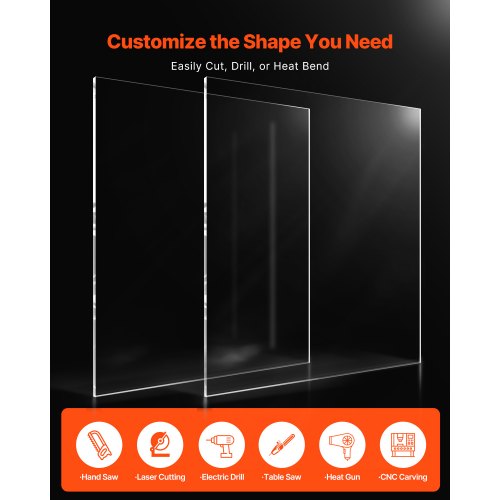 Lámina de plexiglás acrílico VEVOR, paquete de 2 láminas de plástico, 61 x 91 cm, 0,6 cm de grosor, vidrio transparente fundido para proyectos de manualidades, vidrio de repuesto para marcos de fotos, exhibición DIY, fácil de cortar