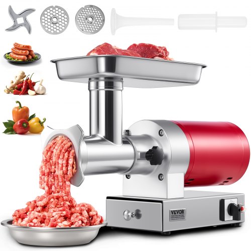 Picadora de carne eléctrica VEVOR, 300 kg/h, 800 W, 1,5 HP, 2 placas de molienda, kit para salchichas, resistente, para uso doméstico, cocina y comercial, color rojo
